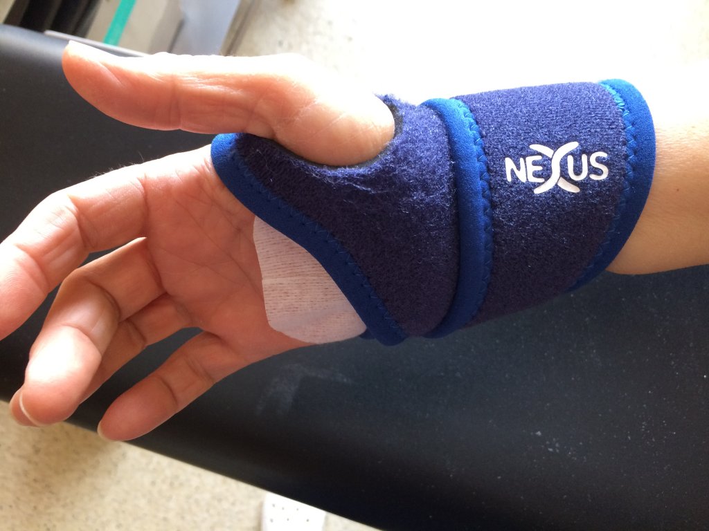 - wskazane jest unieruchomienie nadgarstka ortezą / np ortezą nadgarstka firmy NEXUS/ przez 14 dni – co zapobiega rozejściu szwu w obrębie bardzo cienkiej skóry okol.nadgarstka, zaburzeniom gojenia i wtórnemu bliznowaceniu mogącemu spowodować nawrót dolegliwości. Nie jest konieczne unieruchomienie kciuka, natomiast należy szczególnie unikać zgięcia i przeprostu w nadgarstku ( co ułatwia orteza) oraz odciążyc operowaną rękę przez 3-4 tygodnie. Istnieje możliwośc wypożyczenia ortezy stabilizującej na okres gojenia – szczegóły w rejestracji gabinetu tel. 537 44 66 37)